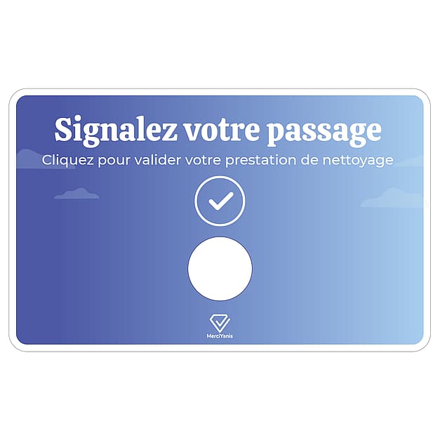 Positionné dans la pièce ou la zone de votre choix, le bouton connecté permet aux agents de valider leur intervention en un clic. Il est possible de mettre plusieurs boutons par plaque pour détailler les prestations réalisées.