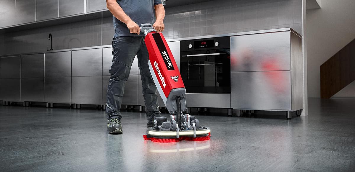 The Cleanfix Toro CAS is a compact, powerful scrubber-dryer that combines cordless freedom with maximum cleaning performance.