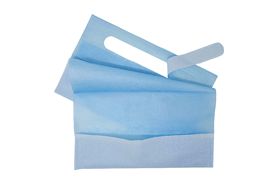 Single-use bibs with a pocket made of pure cellulose wadding laminated with polyethylene. Adjustable to any patient with integrated ties; available in different weights for medical and elderly care use. Hygienic and practical for users and operators. Ideal for Private Label thanks to in-house production ensuring customization, certified quality, and confidentiality. Innovative Made in Italy products, distributed in over 80 countries.