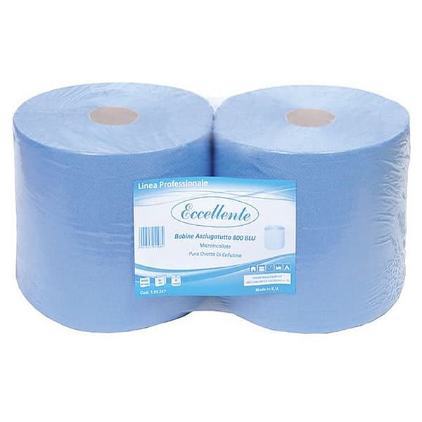 Maxi Industrial wiper roll BLUE, 2x19 gsm, mix cellulose blue glued, 360 m long, 36 cm diameter. Other product length available on request.