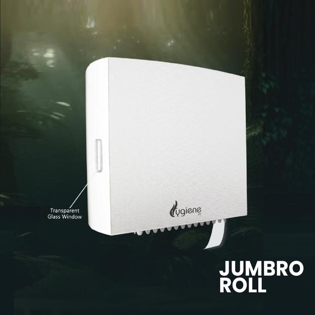 Holding jumbo rolls in them, the Hygiene JRT caters to huge traffic with seldom needing a refill. Providing, a sturdy casing, this dispenser can help bring down the cost-in-use to 70% with the rolls staying far away from water splashes and contamination. And with the secure external lock and a transparent window joined in with the sleek design, you can avoid embarrassing surprises of ' no more toilet papers'.