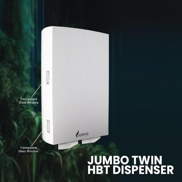Large washroom spaces call for big dispensers. Introducing, the all-new Hygiene Mini Twin HBT dispenser.