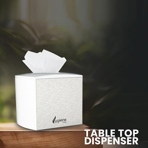 With the Hygiene tabletop dispenser, we have made sure you don't miss out on this gentle care. Holding and dispensing soft tissues, this sleek dispenser does a good job adorning your tables and countertops.