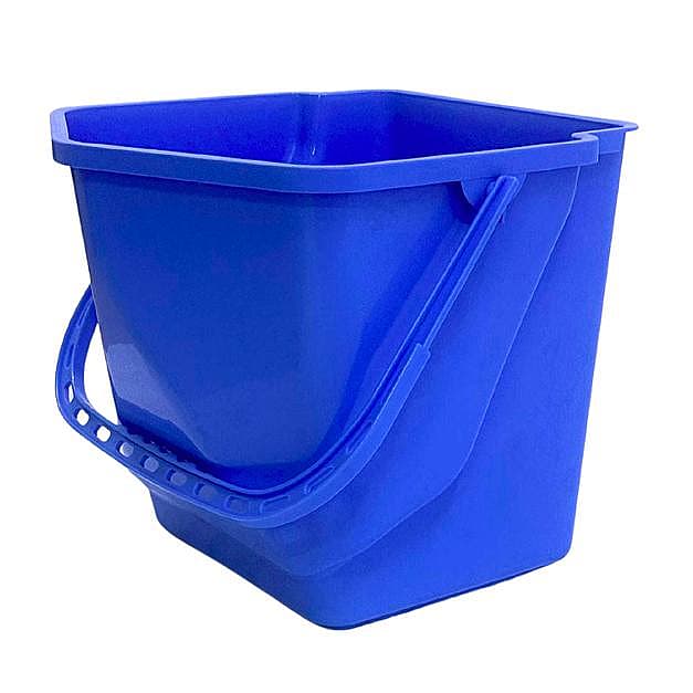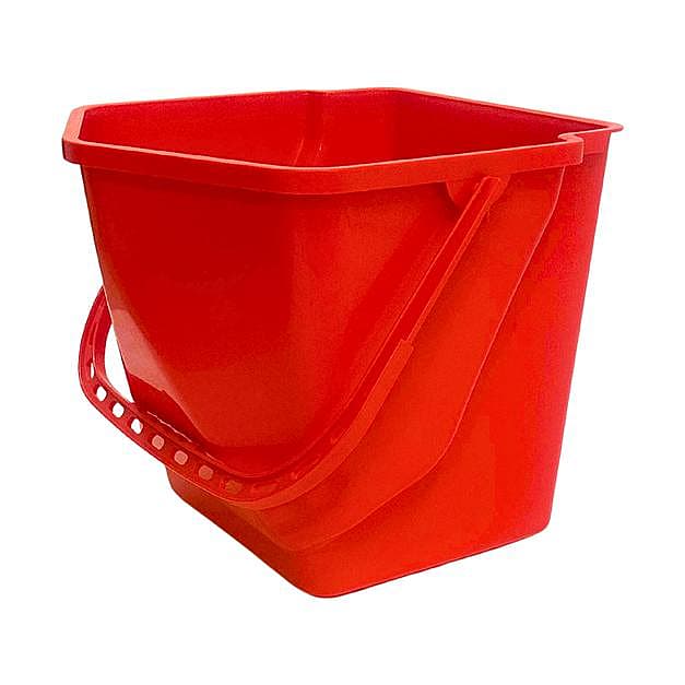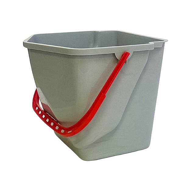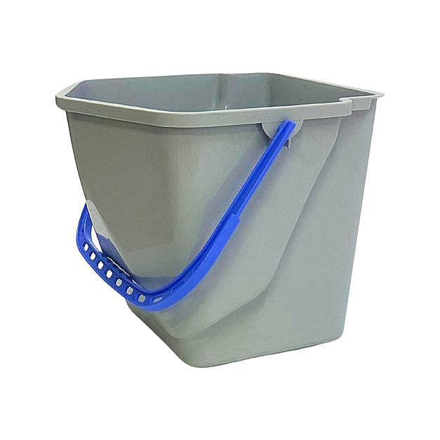 Square bucket available in 15L and 25L capacities, specially designed for wringer trolleys. Made from durable, heavy-duty plastic for long-lasting use. The ergonomic handle ensures comfortable lifting and easy emptying. Its tapered design allows smooth pouring and convenient stacking to save storage space. The square shape fits securely in trolley frames, prevents tipping, and supports efficient mop wringing for professional cleaning applications.