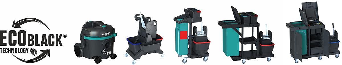 Empty and discarded battery casings – once classified as hazardous waste – are carefully collected, processed and converted into high-quality, robust plastic. This recycled material forms the structural framework of our cleaning trolleys and vacuum cleaners, giving new life to something that would otherwise contribute to environmental pollution. The ECOBLACK product range is characterised by its exceptional durability and user-friendly design, which is tailored to various cleaning requirements.