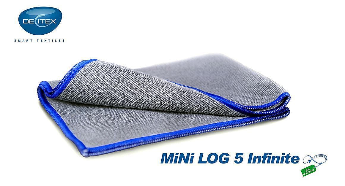 The latest (r)evolution in chemical-free surface cleaning ! The MiNi Log 5 Infinite is a sustainable high-quality microfiber cloth for all your eco-cleaning and water-based protocols. It has been tested, with only water, based on the EN16615 standard methodology, which demonstrates 99.9992% microbial reduction on Staphylococcus aureus (-5.11 log), 99.999% on Pseudomonas (-5.02 log), 99.992% on Candida albicans yeast (-4.10 log) and 99.987% on human Coronavirus 229E (-3.88 log).