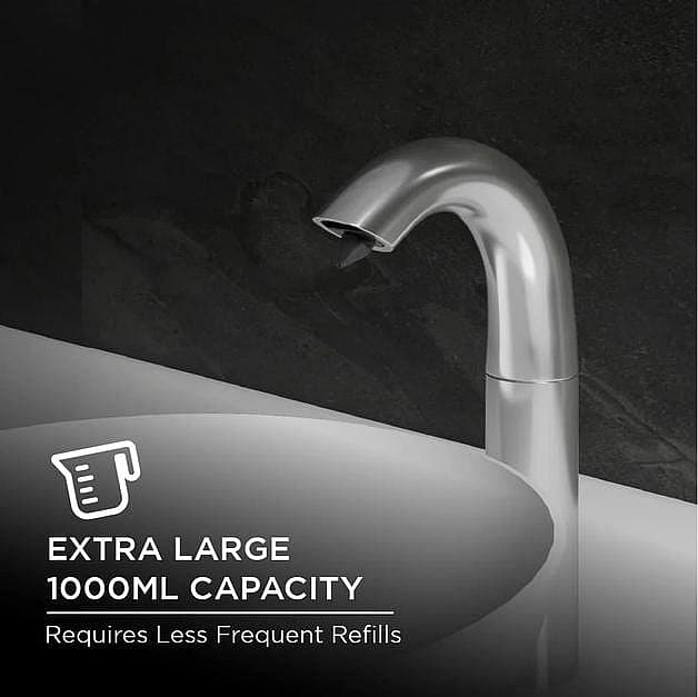 Seamless chrome counter-mount soap dispenser—luxury, touch-free hygiene with elegant under-counter design.
