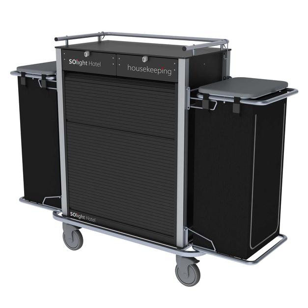 SOlight 2 Loop Pro can be completely closed to hide its contents from view. Equipped with a roller shutter and two front drawers.