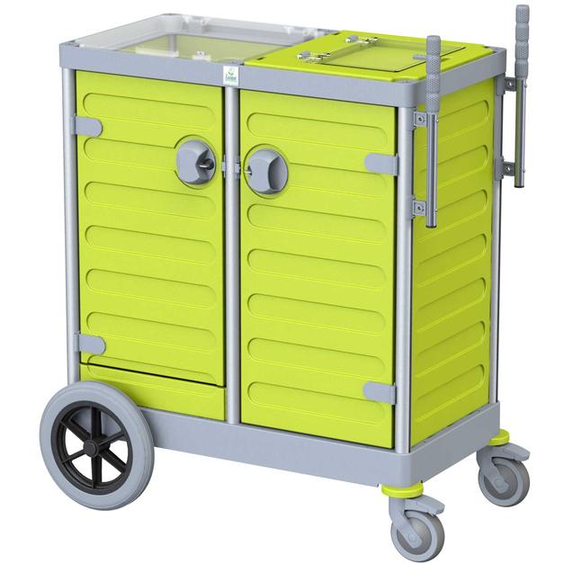 Wheeled Cabinet Kubi Pro Big-Foot is equipped with ø 305 mm big wheels and pushing handles which are suitable for the heavy use and more challenging paths. It is equipped also with two key-locked doors. It can be customized with the accessories belonging to KUBI range.