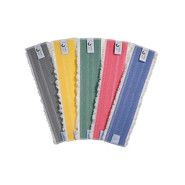 Microfiber wet-mop for floor washing with hook-and-loop attachment on 3D honeycomb fabric.