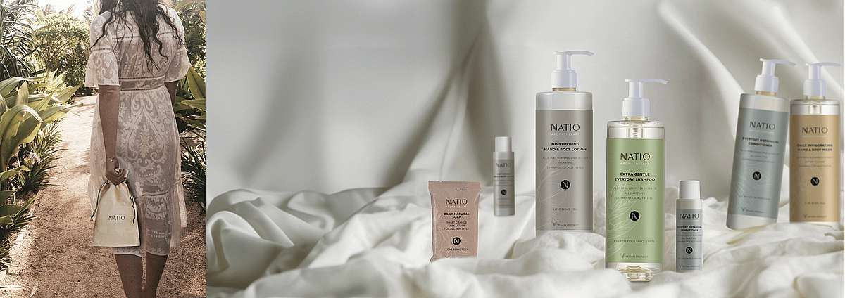 Natio’s amenities collection transforms a hotel stay into a moment of well-being. Our formulations gently cleanse, hydrate, and restore the skin.