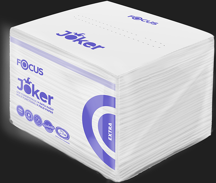 New multifunctional Focus Joker makes your life easier with it hygienic pack that provides practical use. You may use it as a dispenser napkin or toilet paper or with stylish pack as a facial tissue. With Multifunctional usage it optimizes stock management. Thanks to its fully enclosed, wrapped pack open easily and places into the dispenser one move and dispenses one sheet at a time. Also with the second perforation in the pack allows it to be used in secondary areas such as inside vehicles.