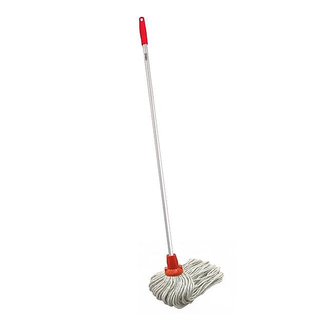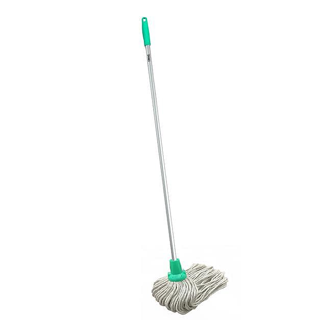 Round cotton mop with high absorbency and strength. Twist style for conical squeeze, tightly twisted to reduce lint, loop ends improve cleaning. 100%
