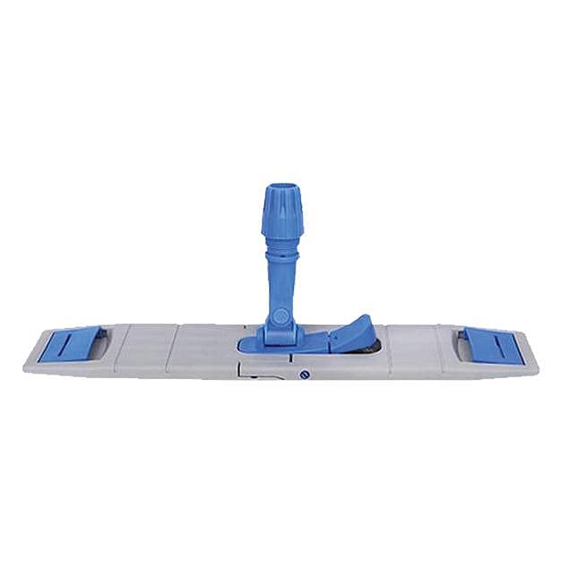 Flat mopping system featuring a durable plastic frame designed for efficient & hygienic floor cleaning. Equipped with an easy push-button mechanism, it allows no-touch mop pad release, reducing direct contact & improving sanitation standards. The lightweight yet sturdy construction ensures smooth maneuverability & long-lasting performance. Compatible with microfiber refills, it delivers effective dirt and moisture control, making it ideal for hospitals, offices, hotels, & other commercial areas.
