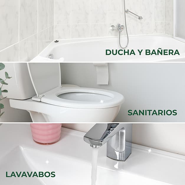 Cleans and removes stubborn dirt, while also preventing limescale build-up. Ideal for sinks, showers and tiles. Cleans the bathroom without excessive odours.