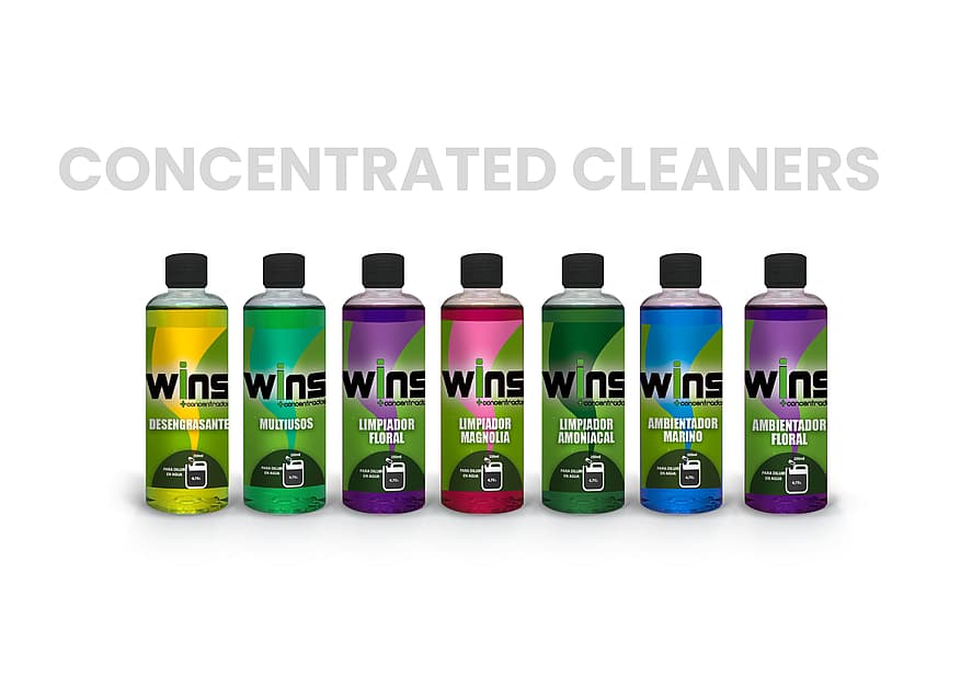 Complete line of concentrated cleaners in 250 ml format. Cleaners, degreasers, multi-purpose cleaners and air fresheners ready to dilute and obtain a 5 litre product. Save on weight, space and trans