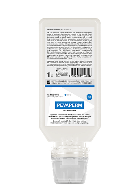 PEVAPERM The generally applicable SKIN CARE LOTION – protects against aqueous and non-aqueous substances.