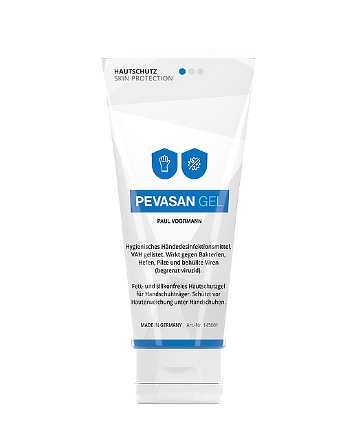 For hygienic hand disinfection. Protects against skin softening when wearing gloves and shoes. Mechanical loads and work in moist areas.