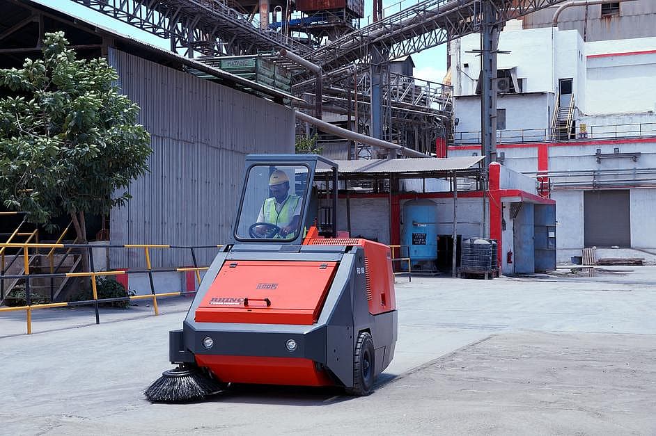 Ideally suited for heavy duty Industrial applications. Large Hopper for extended sweeping. Efficient large filter surface area for effective & continuous dust absorption. Wider sweeping path, maximum productivity. Robust construction ideally suited for challenging terrains. High performance hydraulic system for both machine function and driving. Debris compact system. Effective sweeping of dirt, dust, metal chips, bolts, wood, etc.,