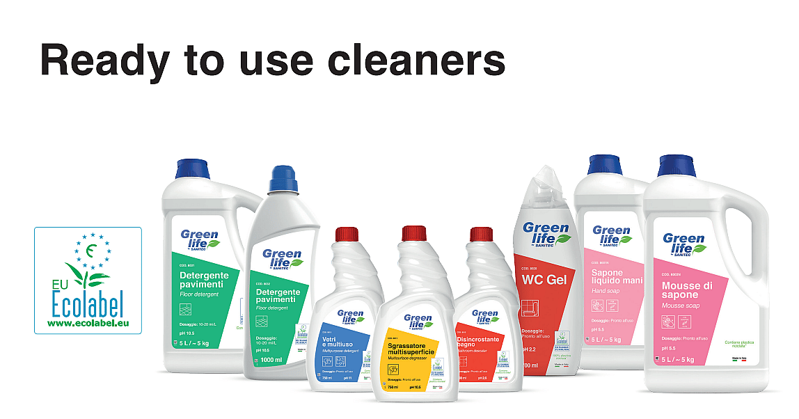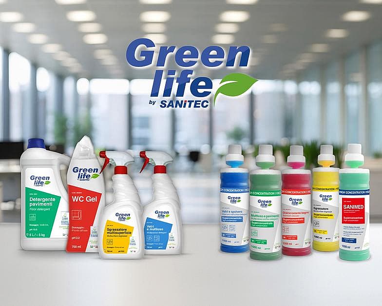Sanitec presents the new line of professional detergents dedicated to the facility world: Green Life. The range has been developed to combine sustainability, high efficiency and functionality, responding to the needs of facility management operators and includes super-concentrated, ready-to-use products for cleaning floors, glass, sanitary and other surfaces.