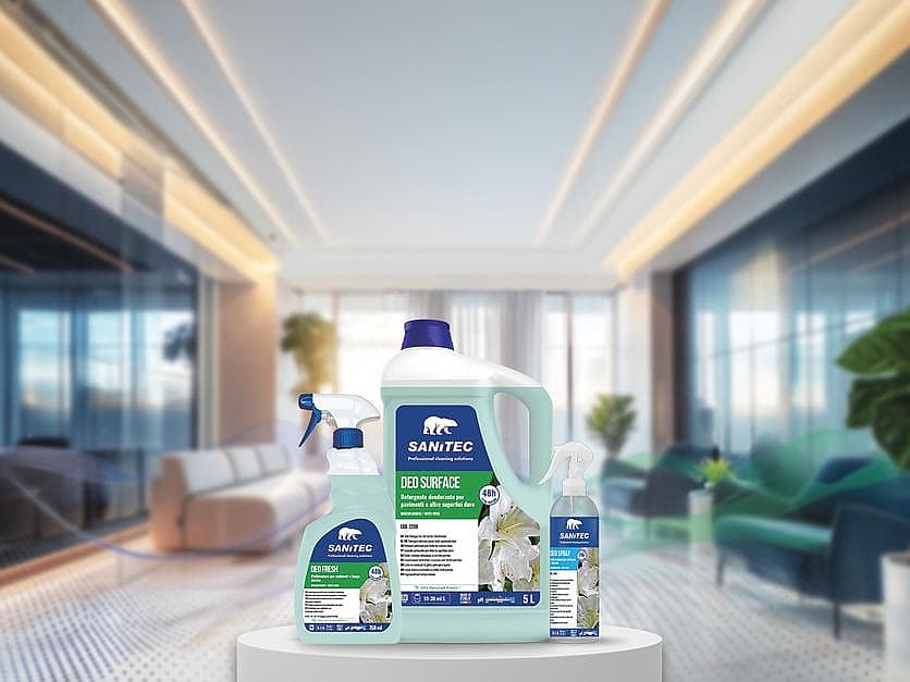 The DEO line is composed of highperformance professional-grade odourneutralising detergents and fresheners designed to ensure impeccable cleanliness and an engaging olfactory experience in any environment. Ideal for hotels, restaurants, offices and business centres, DEO products transform the way spaces are perceived through refined, long-lasting fragrances which range from floral to fruity, from citrus to amber. A common thread for the senses, designed to define and enhance the experience