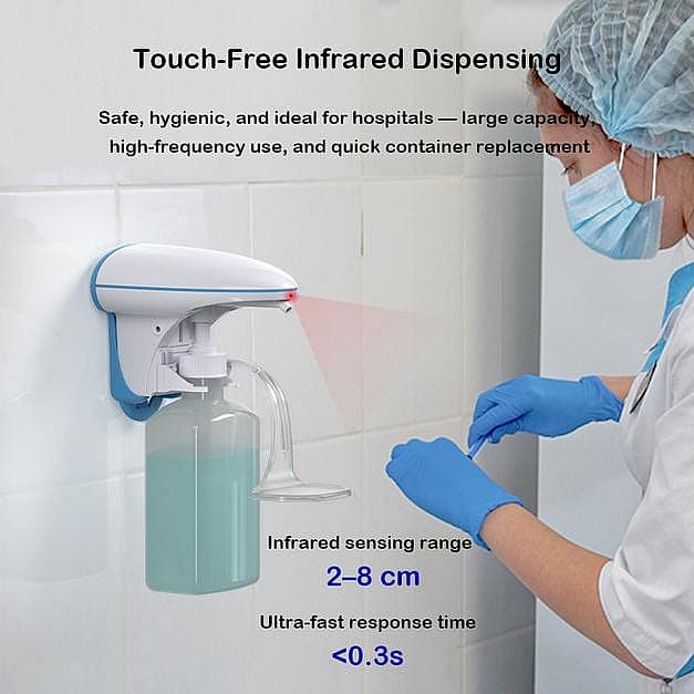 The H2 Hospital Automatic Sanitiser Dispenser is a professional-grade hygiene system engineered to meet strict sanitation standards in hospitals and clinical settings. As the original patented design from Smarlean, it's compatible with a wide range of refill bottle types, allowing quick swaps without tools—designed for maximum convenience and uptime.