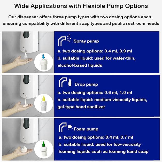 The H3 Automatic Soap Dispenser is a high-performance hygiene solution engineered for commercial and public use. Featuring 6 optional pump configurations, this system accommodates a wide range of liquids to suit diverse usage scenarios.
