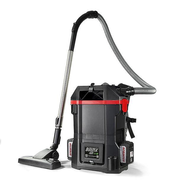 The backpack vacuum cleaner is available in a cordless 36 V Li-ion version or with a power cord. The BoostiX iGO ZERO cordless backpack vacuum cleaner impresses with its extremely low weight of only 4.4 kg, high efficiency and long motor life thanks to its brushless 300 watt EC motor. With a runtime of up to 90 minutes, the device is ideal for long working hours in confined or hard-to-reach areas such as public transport, cinema and theatre auditoriums or stairwells.