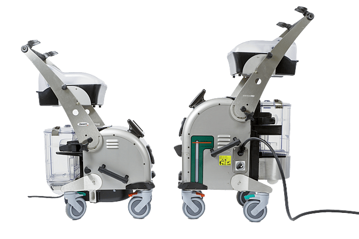 The Blue Evolution XL+ is an industrial steam cleaning system delivering dry steam up to 10 bar and 184 °C with integrated vacuum extraction.