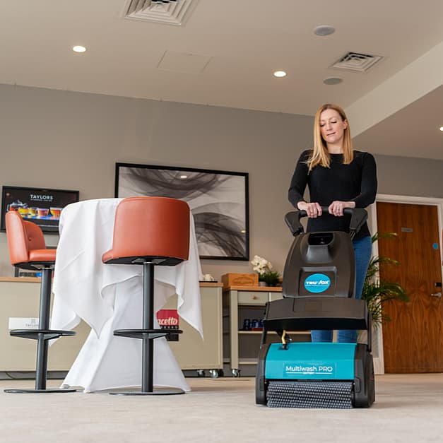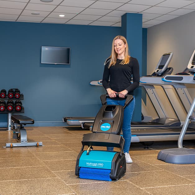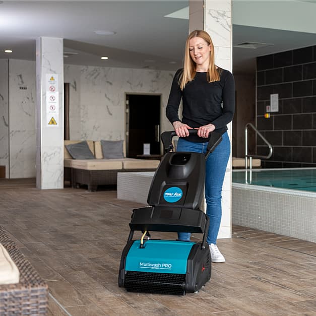 The Multiwash PRO Battery provides exceptional cleaning results with a 1-hour run-time ideal for areas without power and minimises the risk of trips from trailing power cords.