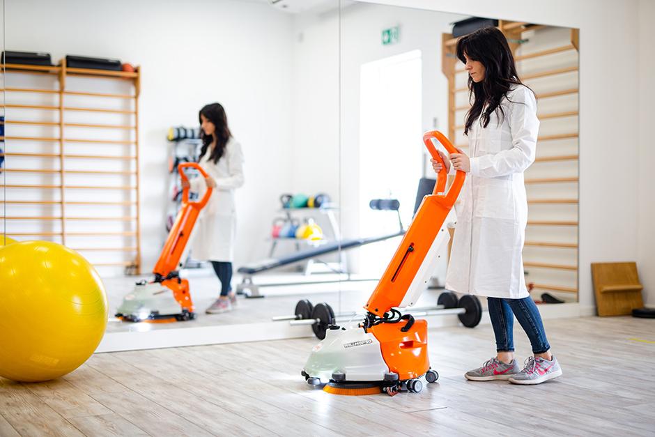 Commercial areas, hospitals, schools, restaurants and sports centres present us with complex cleaning challenges: surfaces full of obstacles, spaces that are difficult to reach, higher hygiene standards to maintain. However, even when the environments become larger and more crowded, the job doesn't have to be difficult for those who perform it. Just equip yourself with the right tools. For all these reasons we have developed WILLMOP 50, the lightest and most manageable upright scrubber dryer machine on the