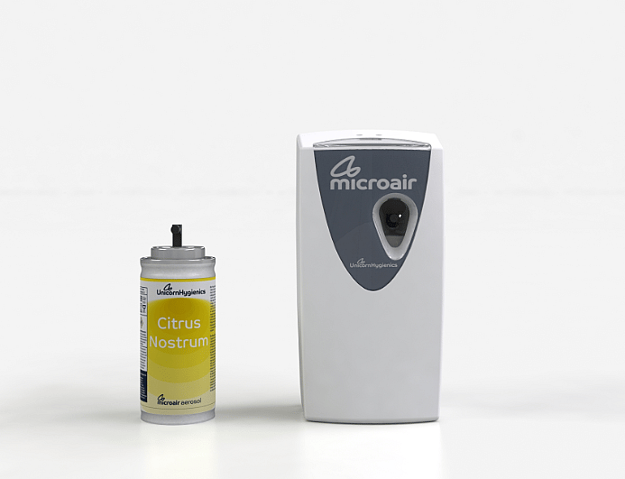 Microair is a durable washroom air freshening system that employs advanced technology to continually deliver lasting fragrance to your chosen area. The compact Microair is fully automated and programmable, meaning customers can tailor the operating hours to suit their needs and deliver fragrances at maximum efficiency. The Microair can be programmed to dispense a wide range of specially formulated fragrances designed to quickly and effectively neutralise any unwanted odours.