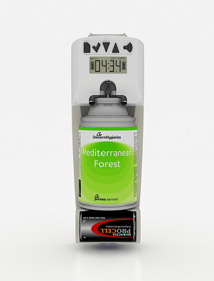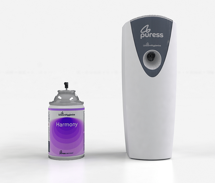 A durable and robust air freshening system, the Puress dispenser utilises advanced technology to consistently deliver a concentrated fragrance of your choice. Puress Air Freshener is an efficient solution in large spaces and continuously provides long lasting fragrance. This fully automatic and programmable air freshener helps eliminate bad odours providing a pleasant and cleaner washroom environment.